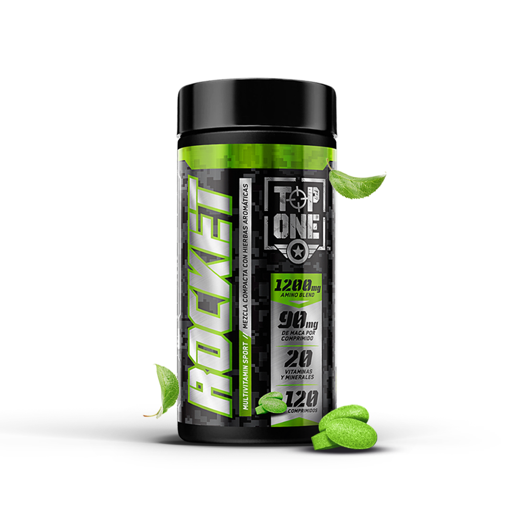 TOP ONE – ROCKET MULTIVITAMIN SPORT. Ofrece un óptimo y completo balance de micronutrientes, en una avanzada fórmula entre 20 vitaminas y minerales. Recomendado y diseñado para atletas de élite y personas activas que buscan un apoyo general de la salud.
